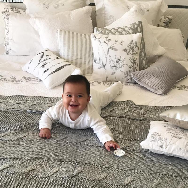 Una imagen del pequeño Jesús descansando en la cama de sus papás fue compartida por la modelo causando sorpresa ¡Siendo tan pequeño se parece mucho a su papá!
