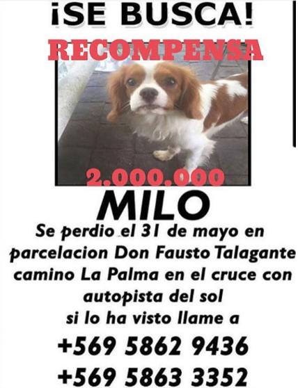 María José López aprovechó la cantidad de seguidores que posee en Instagram (530 mil) para buscar ayuda. El perrito de una de sus hijas, Milo, desapareció de la parcela donde vive en Talagante.