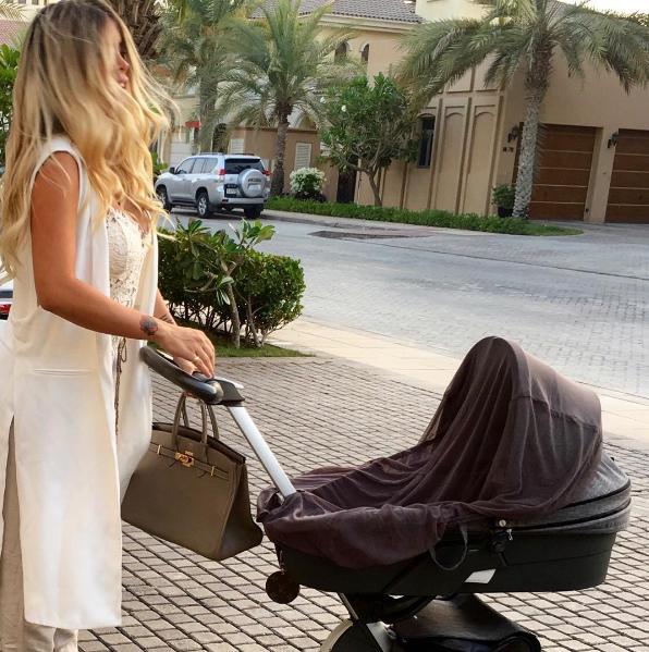 La modelo posó junto a Jesús, quien a días de llegar a este mundo ya vio a su padre jugar en cancha.