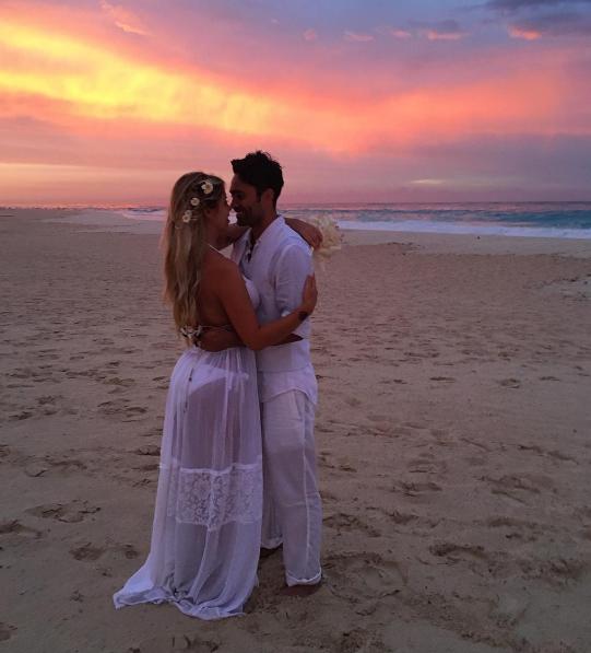 La pareja renovó sus votos matrimoniales en la playa, una fiesta que se celebró de blanco total, con la familia y sus hijos.