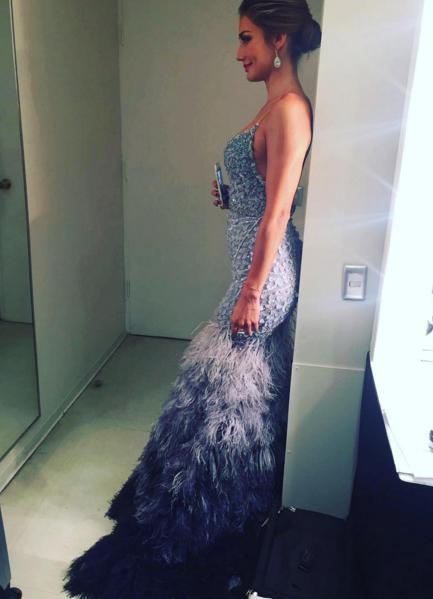 En color nude, con un discreto juego de transparencias y escote profundo, la animadora se lució con un look que en la zona superior se parece mucho al que mostró en la Gala.