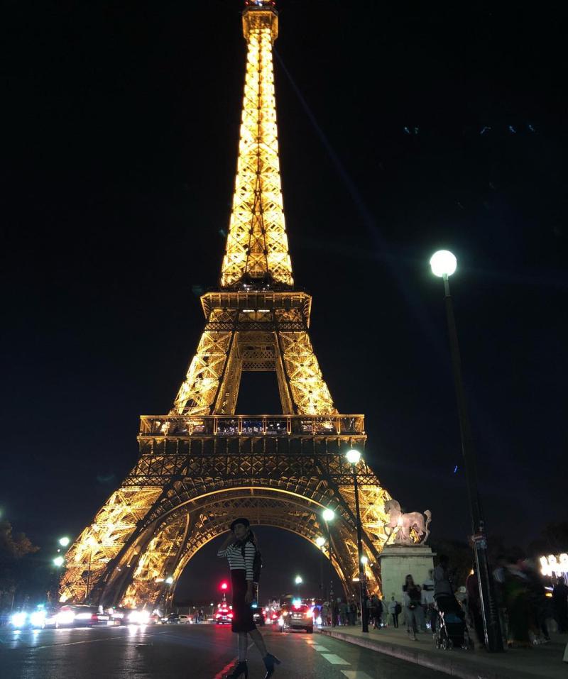 Daniela Aránguiz posa junto a la Torre Eiffel con clásico look francés