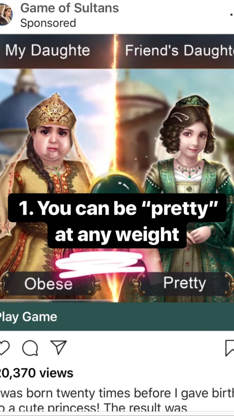En sí la publicación compara a dos jovenes y apunta a la primera como fea dado que es obesa y a la segunda como bella porque es más delgada.