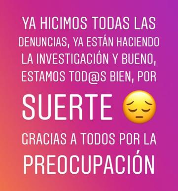 Finalmente reveló que las denuncias ya están hechas, y que agradece a todos sus seguidores por la preocupación en este difícil momento.