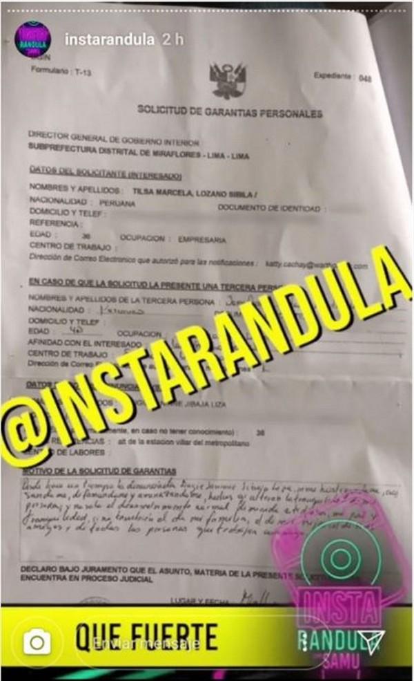 Tilsa Lozano, una modelo y presentadora peruana, aseguró que Jibaja “desde hace un tiempo viene hostigándome, acosándome, difamándome y amenazándome”. Esta denuncia se dio a conocer luego que el portal Instarandula publicara el documento.