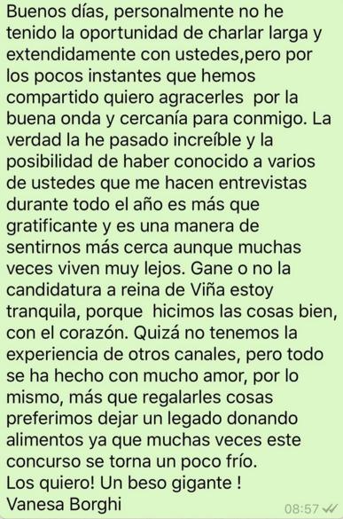 ¿Derrotada? Vanesa Borghi le escribió un mensaje a toda la prensa