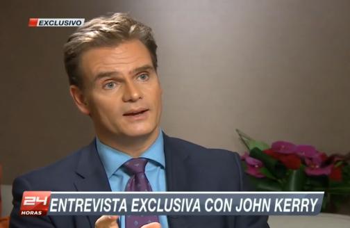 Una entrevista hecha por el periodista al Secretario de Estado de EE.UU. John Kerry llamó la atención por un detalle que escapa del contenido y que se centra en la cara de Amaro Gómez-Pablos ¿Qué le pasó en el rostro al conductor?