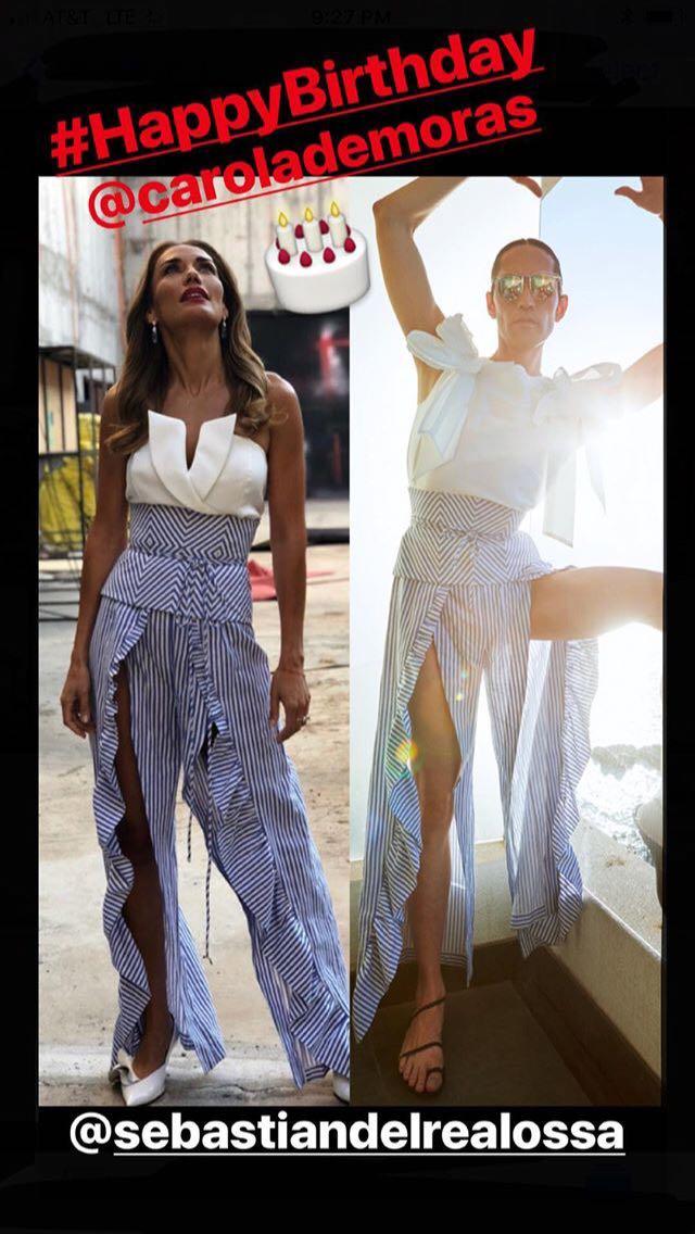 Se trató del de Di Mondo, que eligió felicitarla vestido igual que ella. “Happy Birthday Carola De Moras”, escribió en una foto en la que aparecen los dos con el mismo pantalón, del diseñador Sebastián del Real.