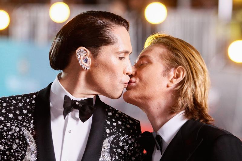 Di Mondo supo manejar la prenda en su paso por la alfombra roja, donde también aprovechó de besarse en la boca con su amado Eric.