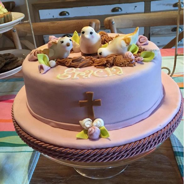 Totalmente angelical y veraniega, con una corona de flores que adornó su pequeña cabecita, Gracias fue bautizada en compañía de sus padres.