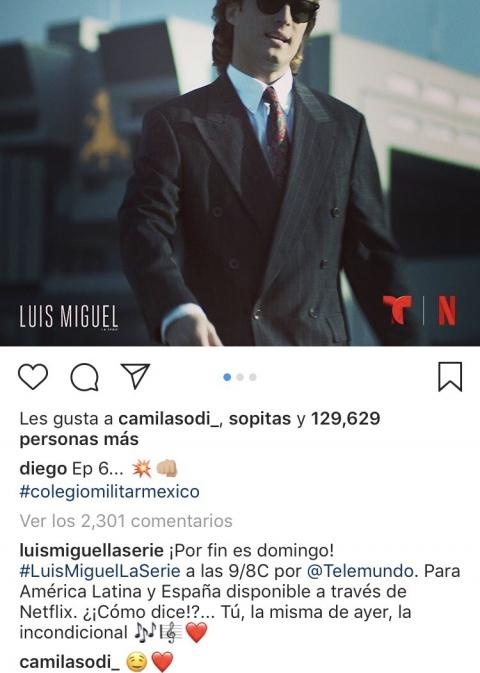 Sin embargo las redes sociales parecen decirnos otra cosa. En primer lugar, Juan Pablo Zurita, que interpreta al hermano de Luis Miguel en la serie, lanzó un comentario que los delató en una foto que ella misma subió de un beso entre “Luis Miguel” y “Erika”.