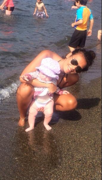 La niña de 5 meses de edad conoció el lago Llanquihue.