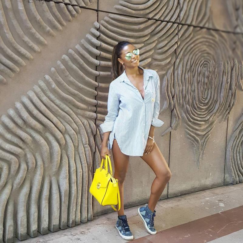 Tendencia de las camisas boyfriend fue adoptada por la chica reality.
