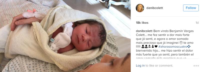 En Instagram publicó la tierna foto del bebe recién nacido acompañándolo del texto “nació mi chinito lindo, te amo hijo mío pronto estar con ustedes”