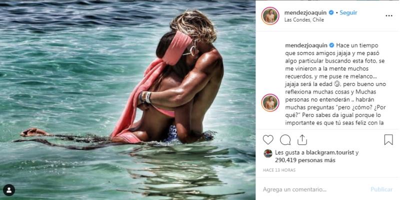 Con una antigua foto, publicada en su cuenta de Instagram, el argentino expresó su apoyo a la ex chica reality. “Hace un tiempo que somos amigos jajaja y me pasó algo particular buscando esta foto, se me vinieron a la mente muchos recuerdos, y me puse re melanco... jajaja será la edad, pero bueno uno reflexiona muchas cosas y muchas personas no entenderán... Habrá muchas preguntas “pero ¿cómo? ¿Por qué?” Pero sabes da igual porque lo importante es que tú seas feliz con la persona que tú elijas. Te quiero negrita, quiero que seas muy feliz, bésame y olvídate”, escribió junto a la publicación que acumula más de 290 mil likes y decenas de comentarios.