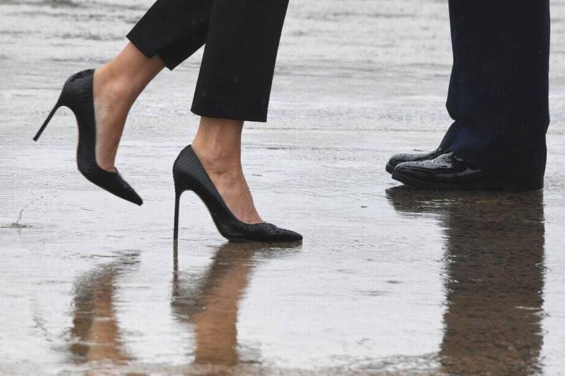 "Melania aquí parece 'Flood Watch Barbie', seguro que sus Loubs no son impermeables, chicas", dijo en Twitter la columnista Maria Del Russo.