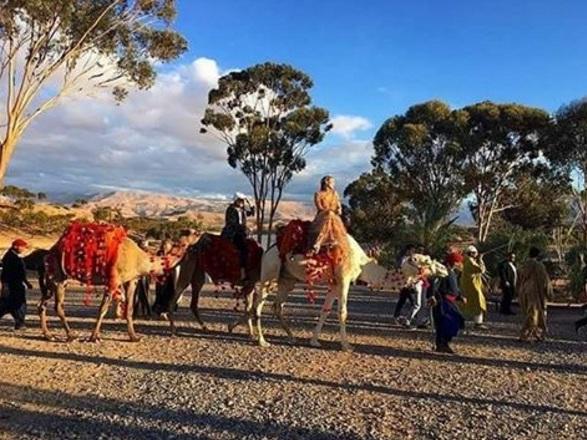 La pareja contrajo matrimonio en Marruecos, donde hicieron una ceremonia de estilo alternativo. Ante ese escenario, Dianna descartó un vestido blanco y optó por un Valentino nude de chiffon, luciendo igualmente hermosa.