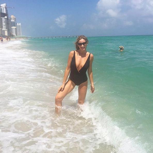 Marcela Vacarezza posee una figura envidiable ¡Cómo el vino! La esposa de Rafael Araneda posó con un bikini negro con escote más que profundo desde Miami, donde pasa unos días de relajo.