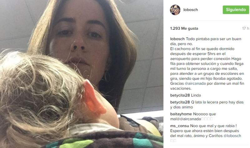 Lorena también se refirió al mal episodio en su cuenta de Instagram. “Todo pintaba para ser un buen día, pero no. El cachorro al fin se quedo dormido después de esperar 5hrs en el aeropuerto para perder conexión”, escribió.