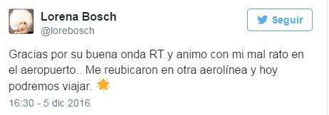 Sin embargo, finalmente tuvo una respuesta y fue reubicada en otra aerolínea, en la cual conseguiría viajar este lunes.