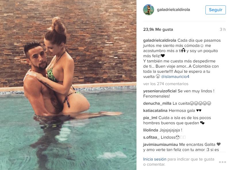 “Cada día que pasamos juntos me siento más cómoda, me acostumbro más a ti y soy un poquito más feliz! Y también me cuesta más despedirme de ti…Buen viaje amor…A Colombia con toda la suerte!!!! Aquí te espero a tu vuelta @islamauricio4”