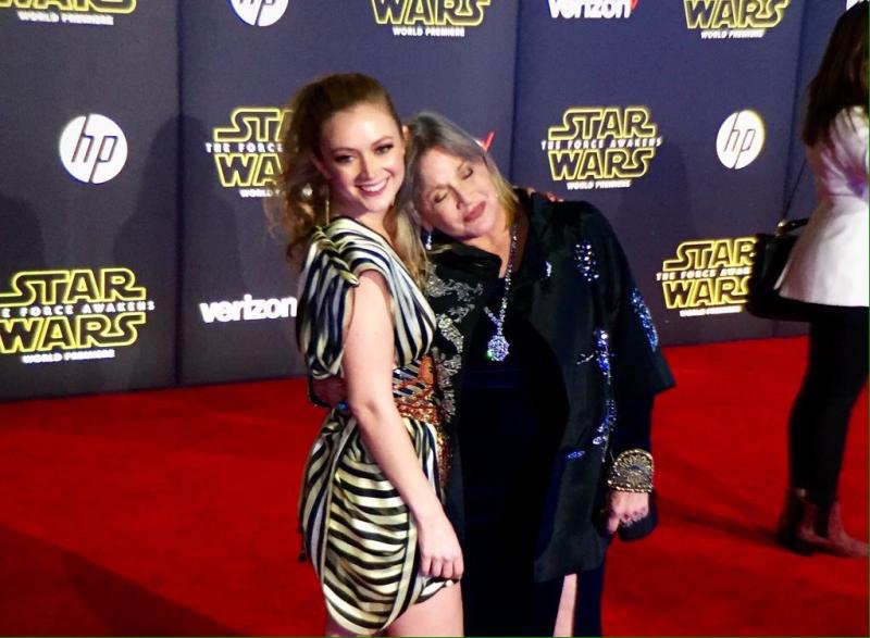 Carrie Fisher llegó junto a su hija Billie Lourd, de 23 años, que también es parte de la cinta, sin embargo, aún no se sabe cuál es su papel.