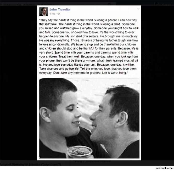 La muerte del hijo de John Travolta, Jeff, quien padecía la enfermedad de Kawasaki dio la vuelta al mundo el 2009. Hoy, el reconocido actor por su participación en “Grease” le dedicó este mensaje a través de las redes sociales: