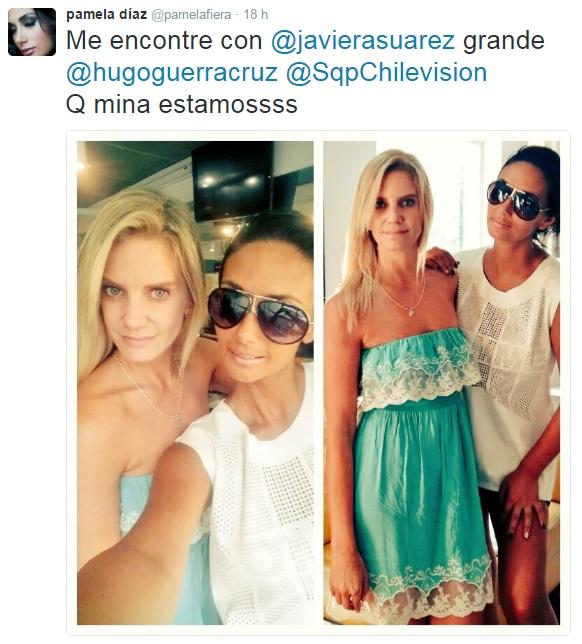 Díaz subió las imágenes del reencuentro con su amiga en todas sus redes sociales. Sin embargo, cometió un error en Twitter, donde aseguró que se trataba de Javiera Suárez y no Acevedo, equivocación de la que todos se dieron cuenta.