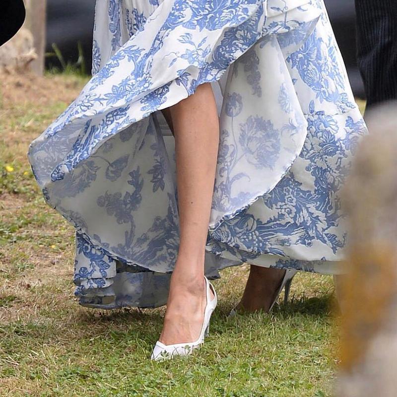 Meghan Markle y el príncipe Harry acapararon todas las miradas durante su llegada a la boda real de la sobrina de Lady Di. Pero en esta ocasión la ex actriz no llamó la atención por su look, sino por el sutil traspié que sufrió en la entrada del lugar.