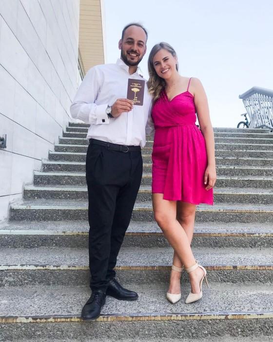 Este pasado martes se realizó lo que fue la ceremonia civil en compañía de su hija Emilia y sus más cercanos. Cada uno por su lado subió distintas fotos del íntimo momento en el que se convirtieron en marido y mujer.