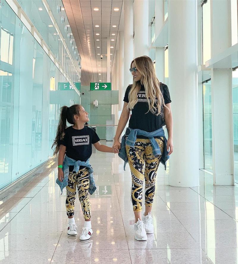 Madre e hija visten la misma tenida, pero ojo, no cualquiera. La ex pareja de Arturo Vidal y la pequeña lucen prendas de lujo. Hablamos de la marca Versace, casa de moda italiana que viste a importantes personalidades del mundo del espectáculo internacional .