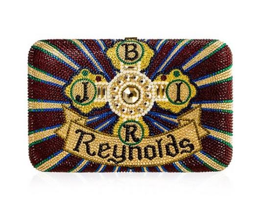En un clutch diseñado por Judith Leiber y por cierto bastante escondido, se puede leer “R Reynolds”, el apellido de él.