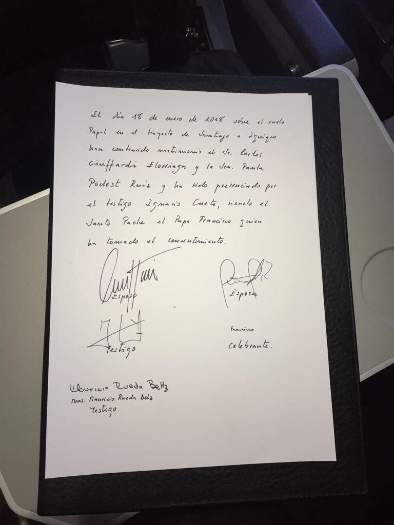 El Papa Francisco casó en un avión a dos tripulantes chilenos
