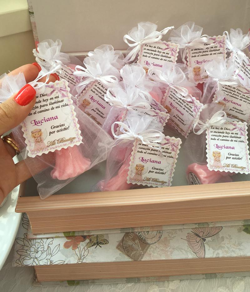 Cada invitado se llevó de recuerdo una miniatura de ángel y Maura los recibió con un letrero de agradecimiento.
