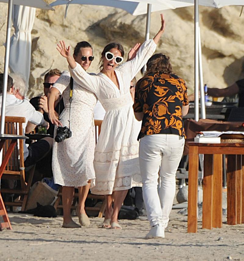 Para la ocasión, la novia, siguiendo el estilo eco-amigable de la boda, eligió un modelo de Zimmermann en color blanco. El sencillo vestido de tela calada dejó ver el recatado escote en V de la novia.