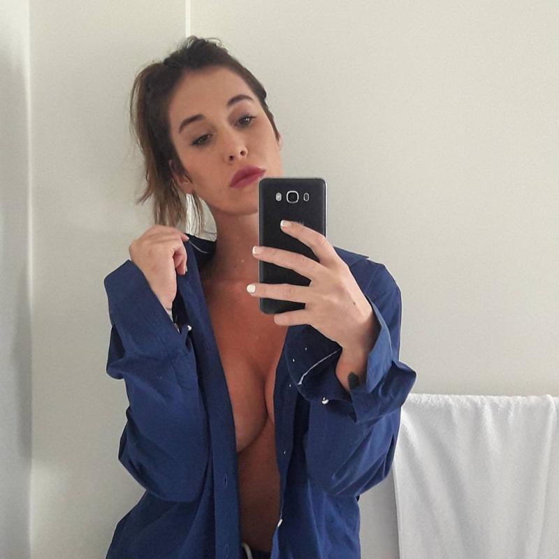 Desde Colombia la bailarina compartió una instantánea como aquellas de antaño que tanto le gustaban a su barra. En topless y con una camisa azul encima, desabrochada, la ex "Yingo" dio a conocer sus curvas y bromeó. "Me creo sesi", escribió.