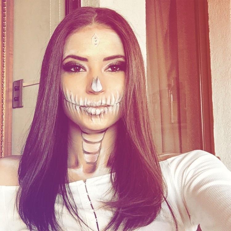 La brasileña se maquilló de calavera, mientras que su familia llevó cotillón para sumarse a la celebración.