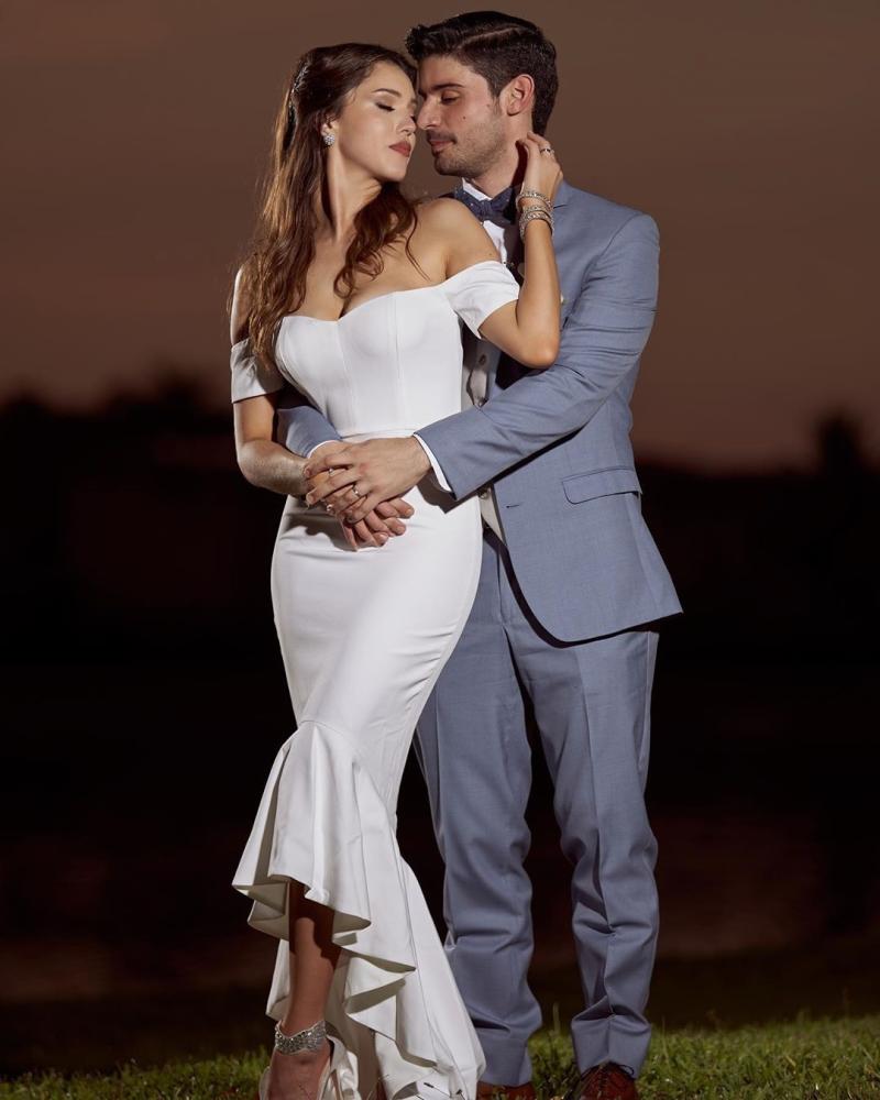Sí, el vestido blanco strapless con corte sirena y falda asimétrica fue un regalo de la madre de Jonathan y le quedó perfecto a la primera prueba. "¡Ay, el vestido es demasiado bello! La verdad es que no me costó nada encontrarlo porque me lo regaló mi suegra. Me quedó perfecto, impecable. No hubo que ajustarlo ni hacerle nada", contó al diario.