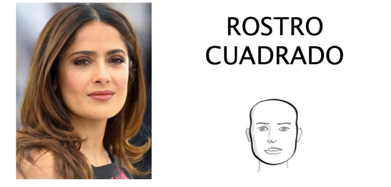 Las caras cuadradas son muy fáciles de reconocer ya que tienen los maxilares gruesos casi del mismo ancho que la distancia entre la sien y el maxilar, y tienen líneas rectas en su rostro, tal como Salma Hayek. Si tienes esta forma de cara debes evitar despejarla completamente, usar ondas para suavizar las líneas rectas, pero sin poner mucho volumen a los costados para no ensancharla más, prefiere el volumen en la parte superior de la cabeza y siempre usa la partidura hacia un costado y no al medio, lo que estilizará tu cara