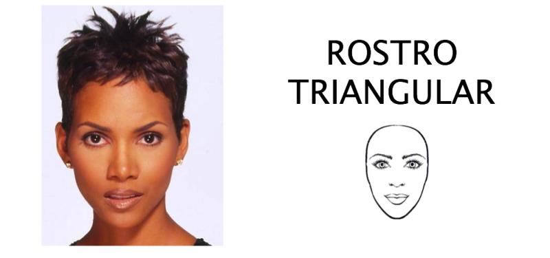 La tendencia de los últimos tiempos ha sido que las personas con cara triangular se apoderen de las publicidades, comerciales y pasarelas. Es un rostro armónico y muy femenino, tienen las sienes pronunciadas, se forma una línea diagonal entre el mentón y las sienes, pero sin que los maxilares estén demasiado disminuidos, tienen los pómulos marcados, pero menos que los rostros de diamante. Los ángulos inferiores del rostro son los que más destacan. La gran mayoría de los peinados les quedan bien, hay que evitar poner demasiado volumen en la zona de las sienes, una buena opción para quienes tienen esta forma de rostro, es despejar tu cara completamente para resaltar aún más tus rasgos o usar tu pelo muy corto como lo hace la actriz Halle Berry que tiene este tipo de rostro.