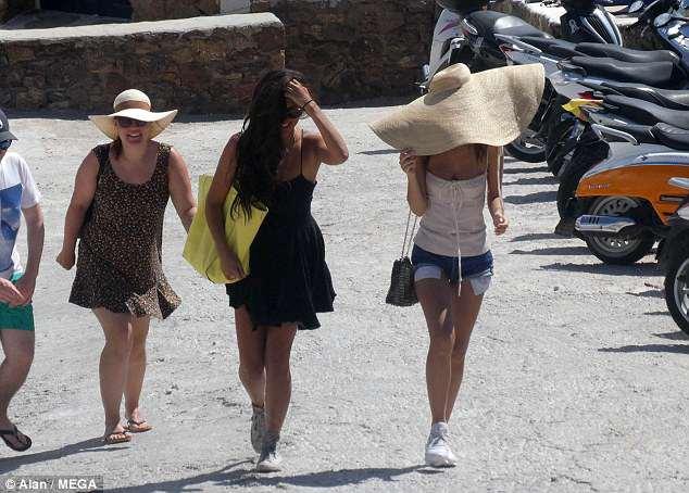 La celebridad fue sorprendida en Mykonos paseando con un look veraniego y este vistoso accesorio, en compañía de unas amigas.
