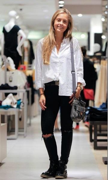 La joven, cuya madre es diseñadora, se inclina por los básicos porque nunca fallan y para la ocasión se puso un pantalón negro con el tip top cut en las rodillas, unos bototos y una camisa blanca ¡Súper cómoda, súper a la moda!