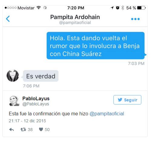 Una serie de audios de la pareja peleando y ella enrostrando infidelidades fueron liberados por un portal argentino. Después Carolina Ardohain confiesa que pilló a su ahora ex infraganti con la "China" Suárez, actriz argentina que graba con Vicuña la película "El hilo rojo".