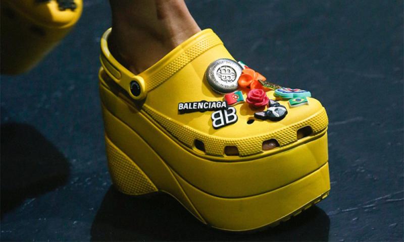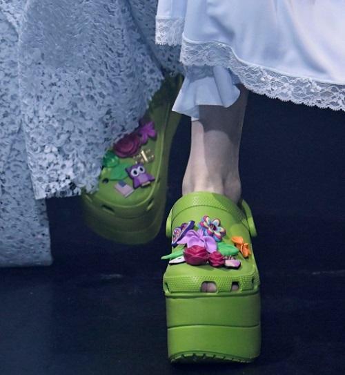 Al parecer los típicos zapatos de goma que vemos en la playa han evolucionado, con una plataforma de 10 cm este diseño ahora se ha convertido en un producto de alta costura.