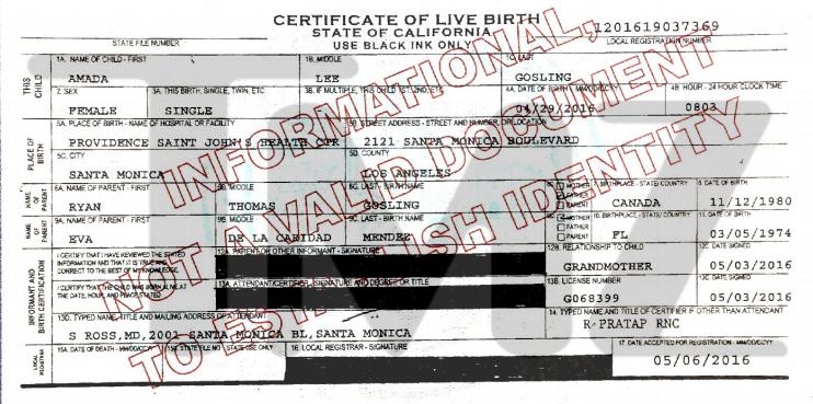 Según el sitio de espectáculos, que revelpó el certificado de nacimiento de la pequeña, Amada Lee nació el 28 de abril a las 8 de la mañana en la ciudad de Santa Mónica, California.