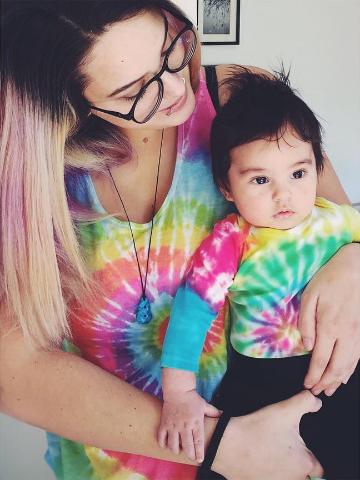 Antonia Larraín además hace match de ropa con su retoño.