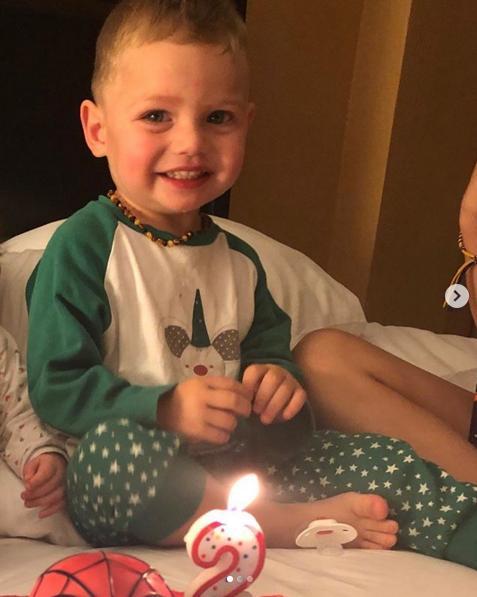Fue en su cama que el menor sopló sus velitas y fue sorprendido por su madre con el pastel y varias fotografías.