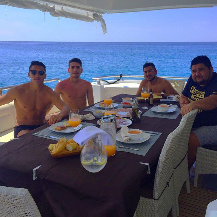Y hace pocas horas se vuelve a lucir con el mismo modelo al sol, junto a unos amigos...