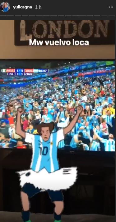 Apenas el marcador dio como ganador a la albiceleste, la rubia compartió efusivos videos y fotos en Instagram.