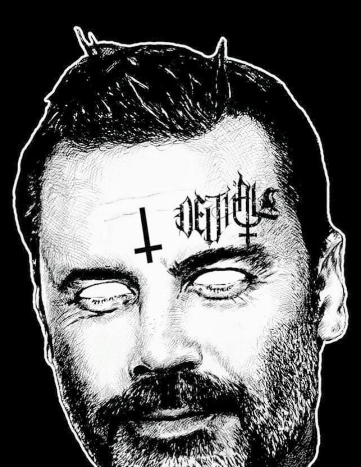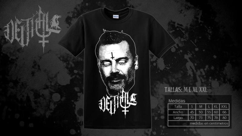 En la prenda de ropa, el ex animador de TVN aparece completamente "satanizado", en blanco y negro, con una cruz al revés en su frente y los ojos blancos.